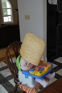We fought back laughter and corrected Phin with a prompt time out and very stern words. After all, had this been a plastic bag, we could have REALLY had a problem. It is kind of funny and kind of creepy (doesn't she kind of look like the pictures you see of prisoner of war in different countries when they are moving them for location to location- yuck). Poor girl. One can only wonder what is in store for her in the future.